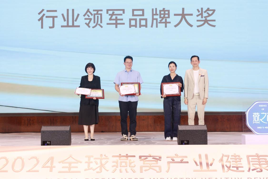 9月23日,在榜樣的力量一行業(yè)表彰盛典上,燕之屋憑借先進(jìn)的創(chuàng)新引領(lǐng)力、卓越的產(chǎn)品競爭力、強(qiáng)勁的品牌影響力榮獲行業(yè)領(lǐng)軍品牌大獎(jiǎng)、行業(yè)匠心品牌大獎(jiǎng)、技術(shù)創(chuàng)新大獎(jiǎng),燕之屋創(chuàng)始人、執(zhí)行董事兼董事長黃健榮獲行業(yè)領(lǐng)軍人物;燕之屋傾情助力2024全球燕窩產(chǎn)業(yè)健康發(fā)展大會(huì),進(jìn)一步推動(dòng)燕窩產(chǎn)業(yè)的創(chuàng)新發(fā)展,促進(jìn)燕窩文化的傳承與交流,為行業(yè)的繁榮貢獻(xiàn)力量,獲頒《2024全球燕窩產(chǎn)業(yè)健康發(fā)展大會(huì)》戰(zhàn)略合作單位,并成為《2024全球燕窩產(chǎn)業(yè)健康發(fā)展大會(huì)》唯一指定碗燕即食燕窩品牌,燕之屋公關(guān)總監(jiān)楊航上臺(tái)領(lǐng)獎(jiǎng)。